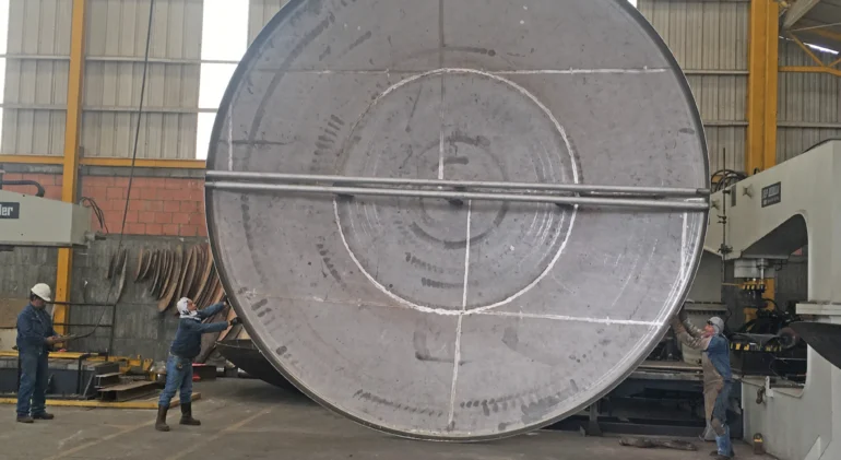 R&F ofrece tapas para recipientes a presión, dando cumplimiento al código ASME VIII -1, UG-80/ UG-81, en diámetros desde 500 mm a 6.000 mm y espesores entre 4 mm y 25 mm. Estas se conforman según los términos establecidos de plazos y calidad, bajo las mediciones requeridas y el seguimiento oportuno de todas las etapas de la fabricación